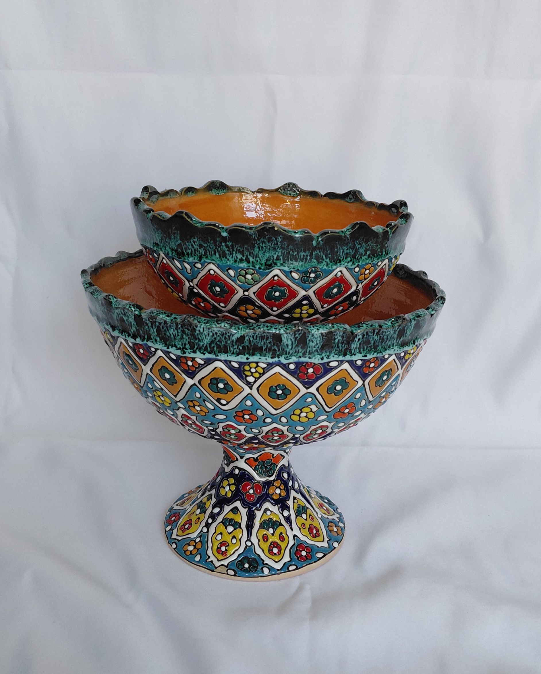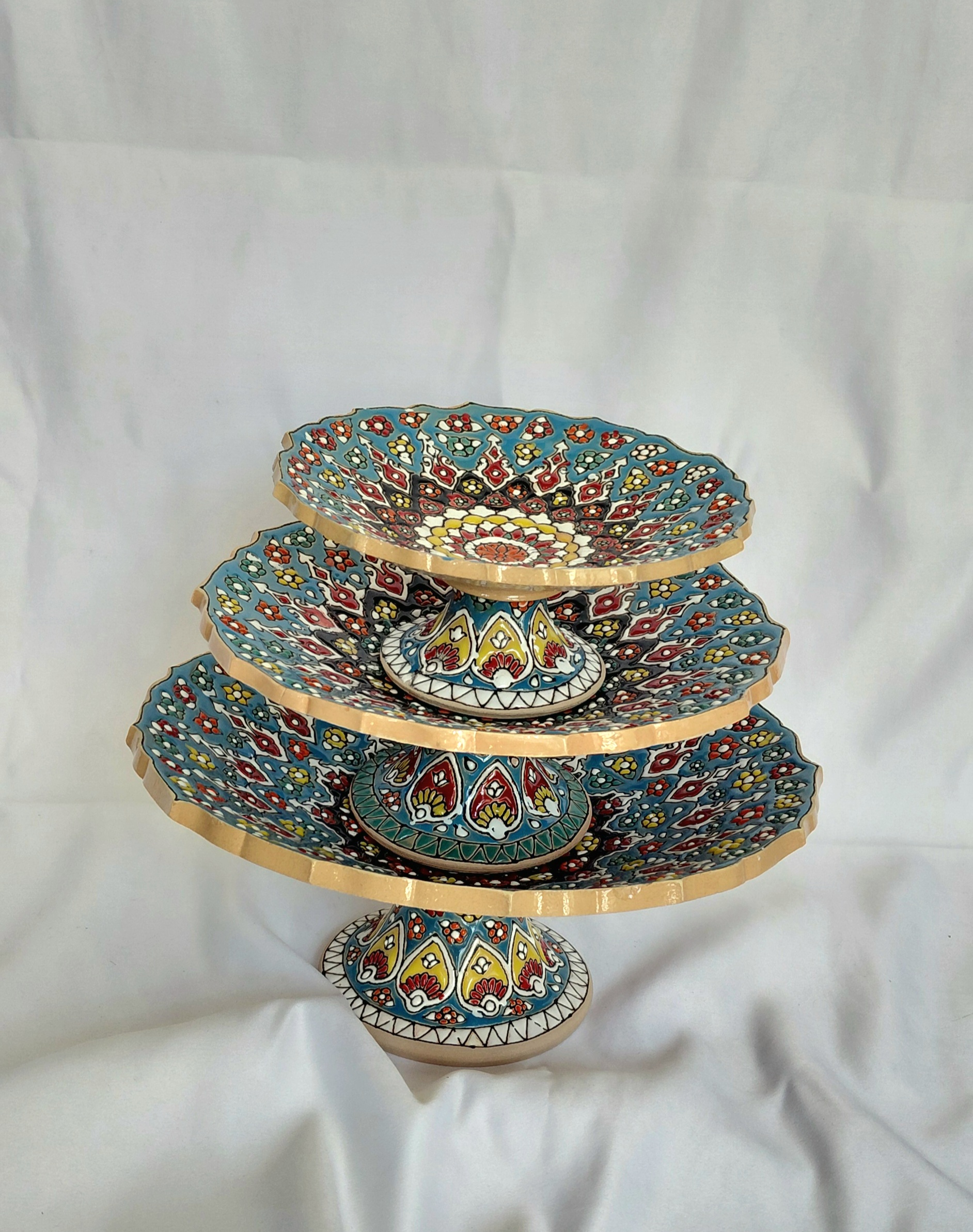 شیرینی خوری تک پایه میناکاری ۳ تیکه