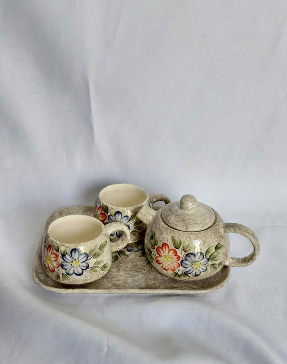 قوری و فنجان ۲ نفره تاپ فلور با سینی