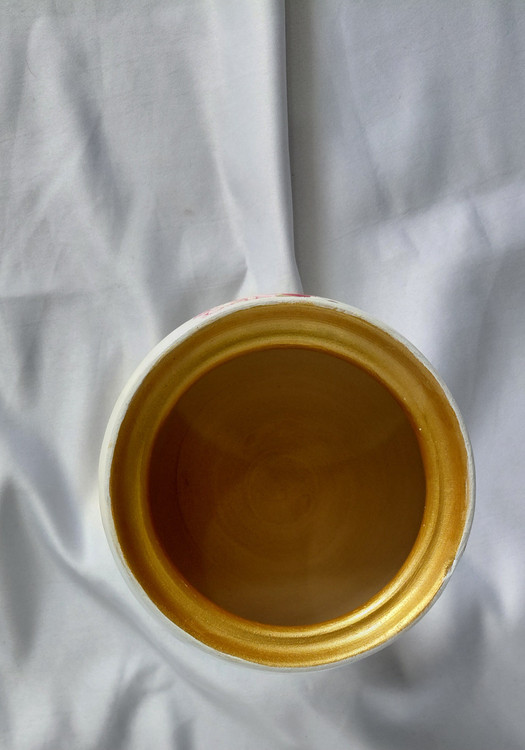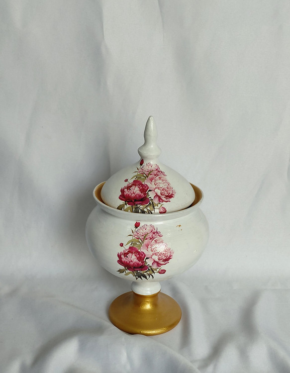 شکلات خوری پایه دار رنگ شده با رنگ اکرلیک قابل شستشو ارتفاع ۲۸ و قطر دهانه کار ۱۳ سانت به علت مصرفی بودن داخل کار رنگ نشده