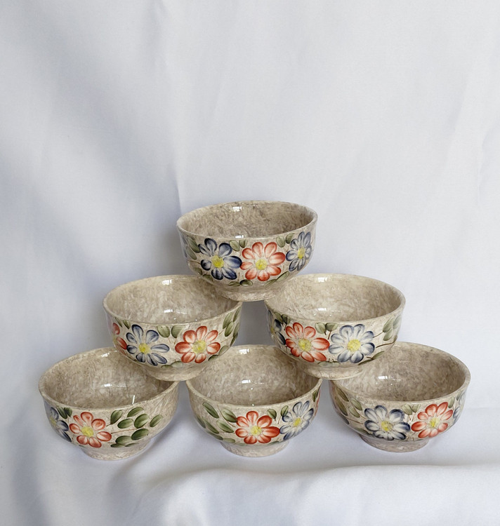 ۶ عدد کاسه سرامیکی مناسب برای ماست و ترشی و زیتون.طرح فوق العاده زیبای فلور.طرح روی کار کاملا کار دست و با قلم طرح میخوره.انواع کارهای این طرح از جمله پارچ و لیوان،قوری و فنجان،کاسه آبگوشتی و ..رو در بخش فلور سایت مشاهده فرمایید