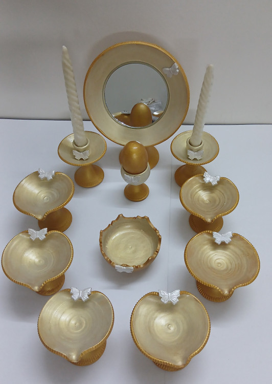 هفت سین مدل قلب سفالی ۱۱ تیکه یه کار فوق العاده زیبا و دلنشین.رنگ شده خودمونه و دست اول تقدیم میشه.هفت سین مدل خورشیدی طرح چوب و هفت سین مدل بشقاب کمانی باغ بهشت از زیباترین های موجود در سایتمون هست و همچنین برای دیدن تنوع هفت سین هفت سینهامون به بخش دسته محصولات و قسمت