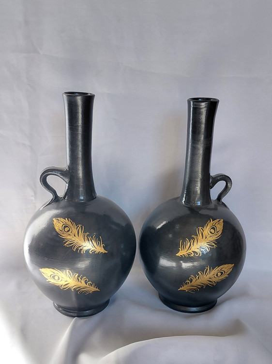 دو عدد کوزه سفالی رنگ مشکی اکرلیک و قابل شستشو ارتفاع کار ۳۰ سانت مناسب برای ویترین داخل آشپزخانه