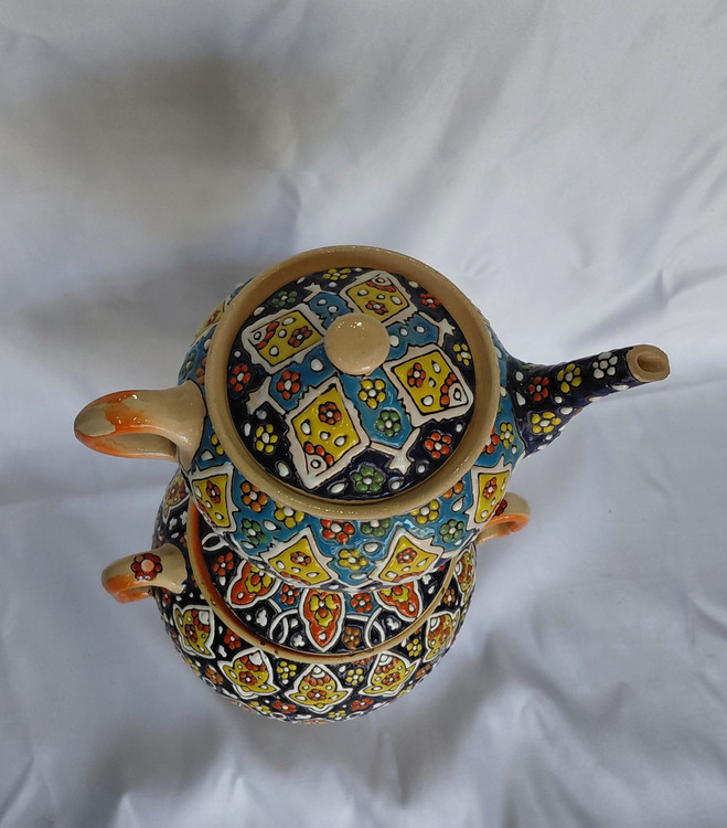 قوری و سماور میناکاری شده،یه کار فوق العاده زیبا برای دکور و تزئین خونه ارتفاع کار ۴۸ و قطر میانی کار ۲۳ سانت