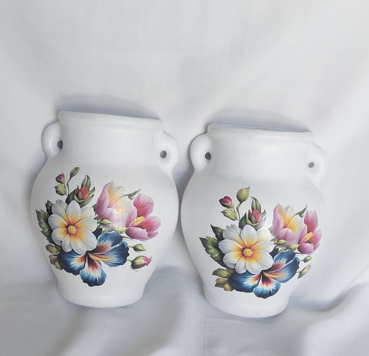 گلدان سرامیکی دیواری مناسب برای گل مصنوعی ارتفاع ۲۰ و عرض ۱۵ سانتیمتر از کارهای طرح و رنگ خورده خودمونه و به هیچ عنوان لب پریدگی و خط و خش روی کار مشاهده نمیکنید