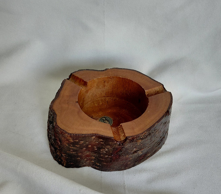 زیر سیگاری که از چوب تراش خورده هست.داخل چوب کنده شده و به این شکل در اومده.توجه داشته به خاطر طبیعی بودن کار هر کدومشون به یه شکل خاصی هستن و در صورت سفارش هر کدوم که موجود باشه براتون ارسال میشه.قطر کار ها حدودا ۹/۵ و ارتفاع ۴/۵ سانت