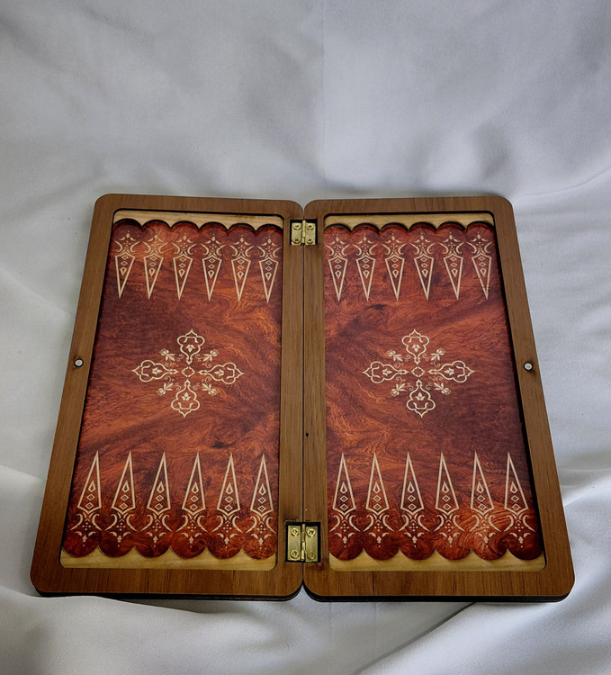 یه کار فوق العاده زیبا و جذاب که میتونید به راحتی هر جا خواستید با خودتون حمل کنید طول و عرض کار در حالت باز شده حدودا ۲۵ سانت هست.از داخل کار برای تخته نرد و بیرون کار به عنوان شطرنج استفاده کنید.در ضمن یه کاور چرمی هم همراه کار هست در عکس مشاهده میکنید