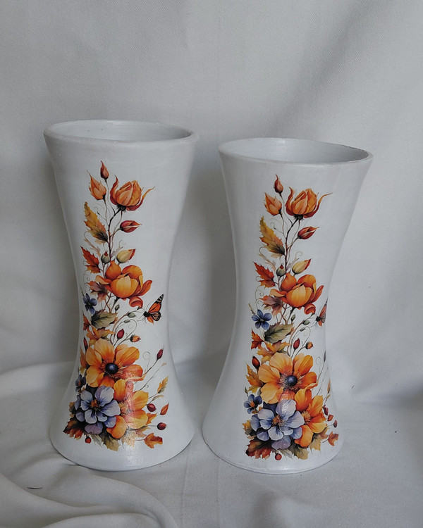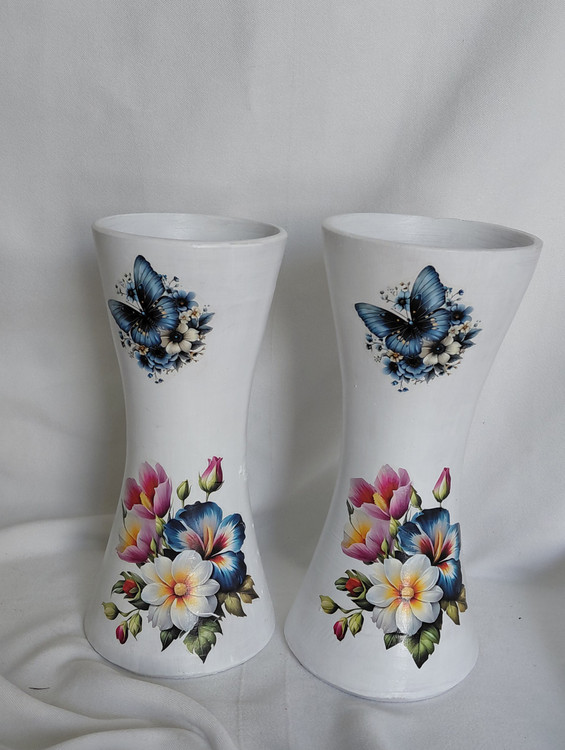 گلدان ها جفت هستن ارتفاع هر کدوم ۱۹/۵سانت و قطر ۸ سانت.توجه داشته باشید ارتفاع گلدون ها کمی با هم متفاوت هستن و این فقط به خاطر کار دست بودنشون هست
