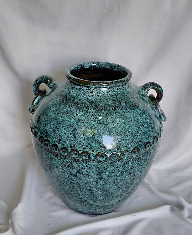 گلدان توپی سفالی مدل اشکی ارتفاع کار ۳۰ و قطر دهانه ۱۳ قطر وسط کار هم حدودا ۳۰ سانت