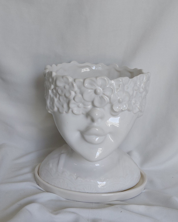 گلدان سرامیکی قابل استفاده برای گل طبیعی یا مصنوعی به همراه زیره گلدون ارتفاع ۲۳ و. قطر دهانه گلدان ۲۰ سانت