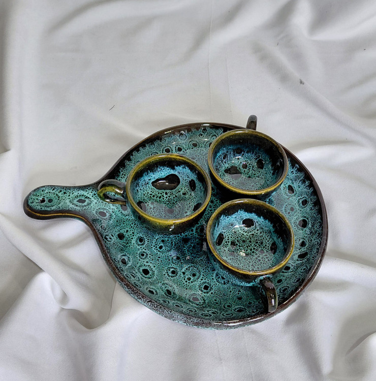 ست سینی قهوه ارتفاع سینی ۲/۵ قطر ۲۰ ارتفاع فنجان ها ۳/۵ و قطر ۶ سانت