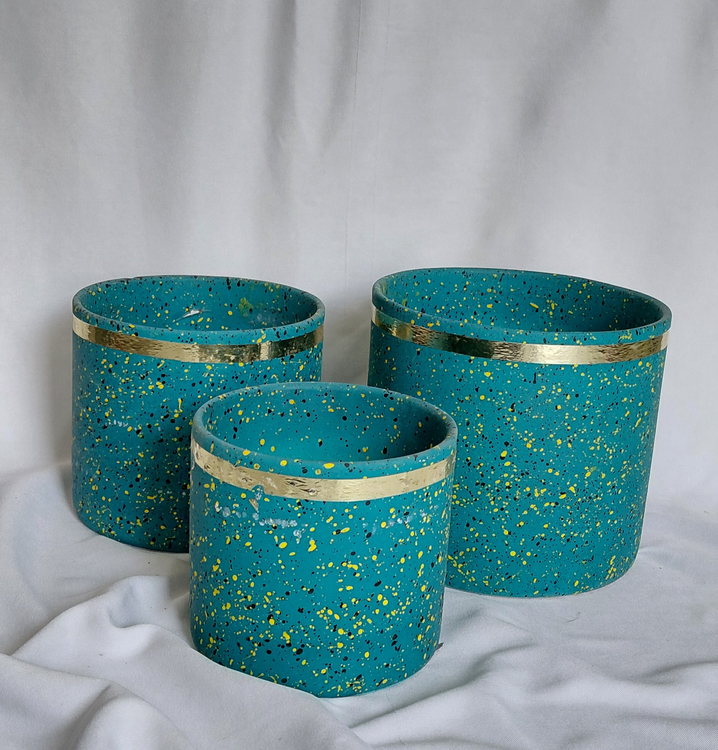 گلدان سرامیکی ۳ تایی ارتفاع و قطر از کوچیک به بزرگ به ترتیب۱۳ و ۱۴_۱۵ و ۱۷_۱۷ و ۱۹ سانت