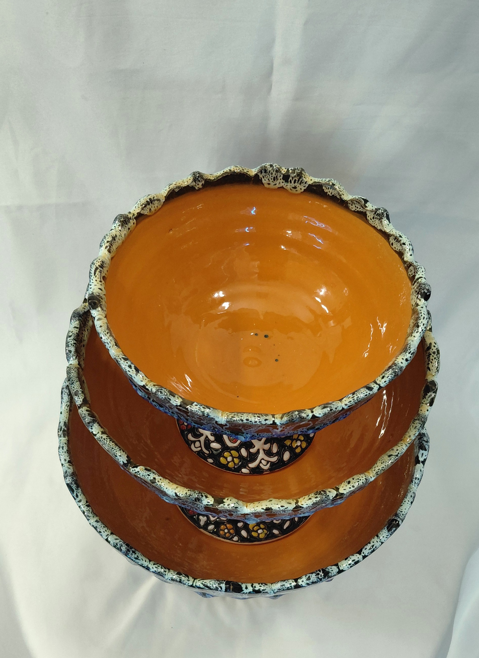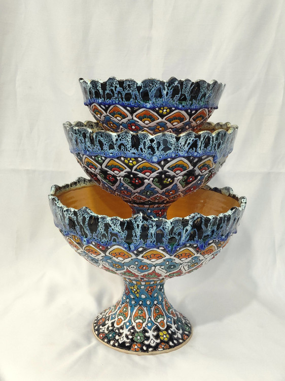 میوه خوری ۳ تیکه میناکاری سفالی