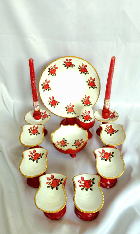 انواع هفت سین سفالی در رنگ و طرح های مختلف که همشون تولید خودمون هستن با پایین ترین قیمت و بهترین کیفیت تقدیم شما میشه.۱۱ تیکه شامل آینه و جا شمعی و جا سبزه و سین و تخم مرغ.شما میتونید برای دیدن هفت سین های میناکاری به بخش های مربوطه سایتمون سر بزنید