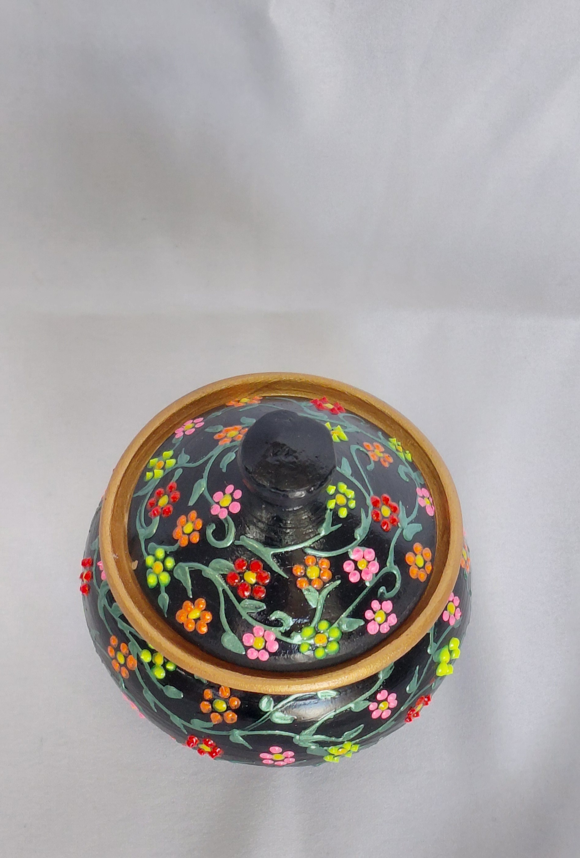 قندان فانتزی سفالی طرح باغ بهشت که بسیار زیبا و پرطرف دار هست ارتفاع ۱۰ و قطر کار ۶/۵سانت هست داخل کارهای مصرفی رو رنگ نمیکنیم که مواد شیمیایی نداشته باشه