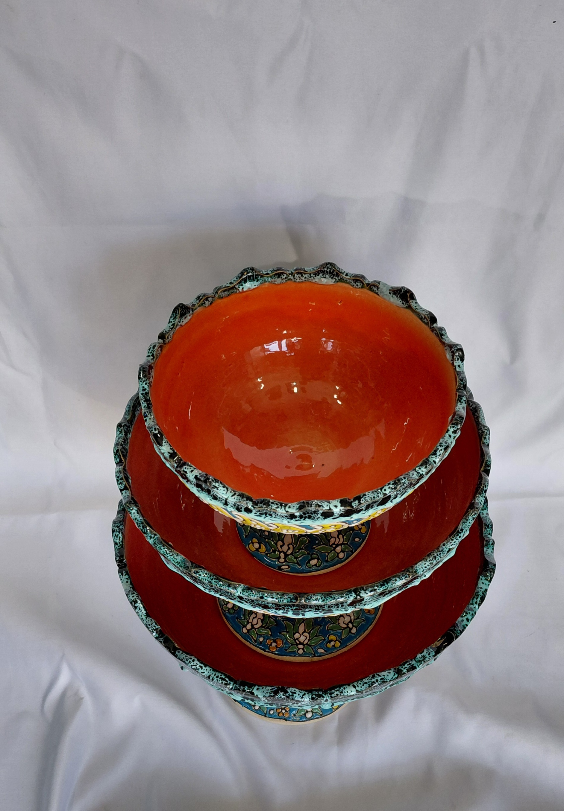 انواع ظروف مصرفی و کارهای دکوری و تزئینی میناکاری رو در بالاترینکیفیت و مناسب ترین قیمت تقدیم شما میکنیم.میوه خوری ۳ تیکه مینا در سایز بزرگ ارتفاع ۲۲ و قطر ۳۰،سایز وسط ارتفاع ۲۰ و قطر ۲۵ و سایز کوچک ارتفاع ۱۶ و قطر ۲۰